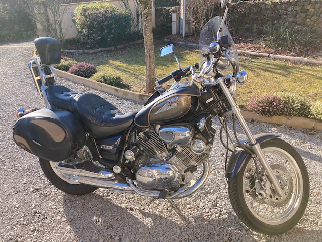 vends moto YAMAHA VIRAGO 1100 cm3 année 1998 prix: 2900€ État exceptionnel Très bien entretenue, propriétaire initial Top-case, sacoche de réservoir...