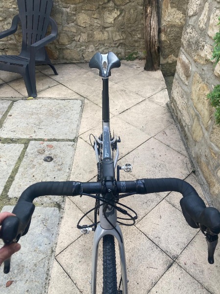 Je vends mon Gravel Century Nakamura taille M, cadre alu, fourche carbone, groupe shimano GRX 400, guidon genesis, selle prologo, année 2021. Plaquettes avant neuves, pneu arrière neuf. Très bon état.