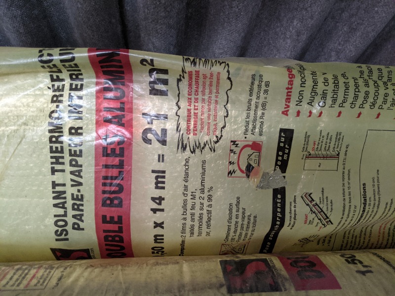 5 rouleaux isolant thermo réflectif pare vapeur intérieur dim. 1m50 x 14ml = 21m2 épaisseur 7mm Non nocif Non irritant Composition (2 films à bulles...