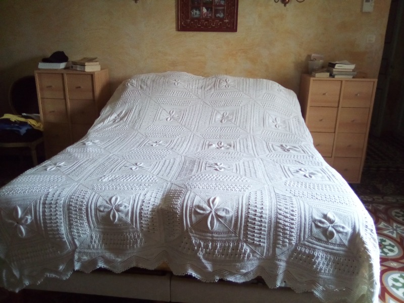 Très beau dessus de lit artisanal en coton blanc, réalisé au crochet Dim: 2.20 X 2.30 m Très bon état