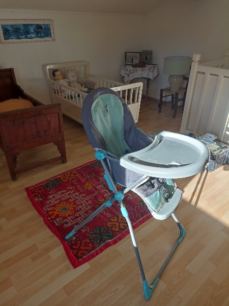 bleu ciel et gris. Tissu lavable , plateau plastique gris avec repose verre Très bon état 07 89 50 22 47