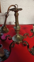 Vends 2 lustres en laiton, parfait état, 5 branches. Peuvent être vendus séparément.Fonctionnent parfaitement40 euros l'unité