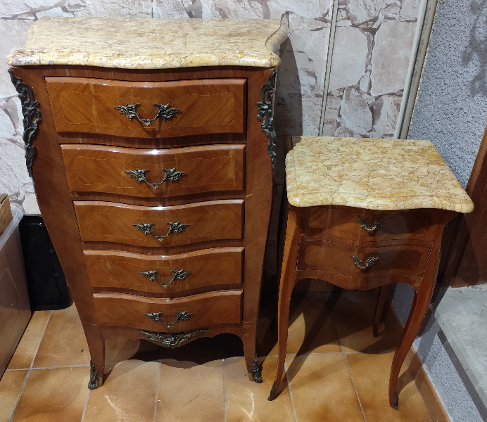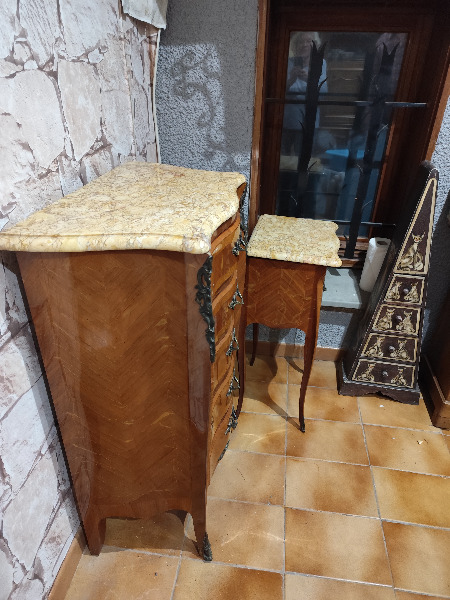 Chevet même style : Largeur : 39 cm - Hauteur : 74 cm - Pr : 39 cm - Prix : 60 € (ou 200 € les 2 meubles)
