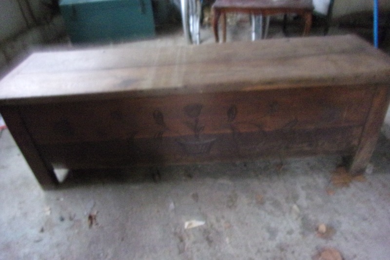 1 Coffre de Rangement ancien en Chêne sculpté. Excellent état.Dimensions : L 1,48 L 0,47 H 0,47. Prix 90 Euros et 1 Coffre Ancien peinture d'époque. TBE. L 1,46 * 0.5 * 0,5. Prix 70 euros