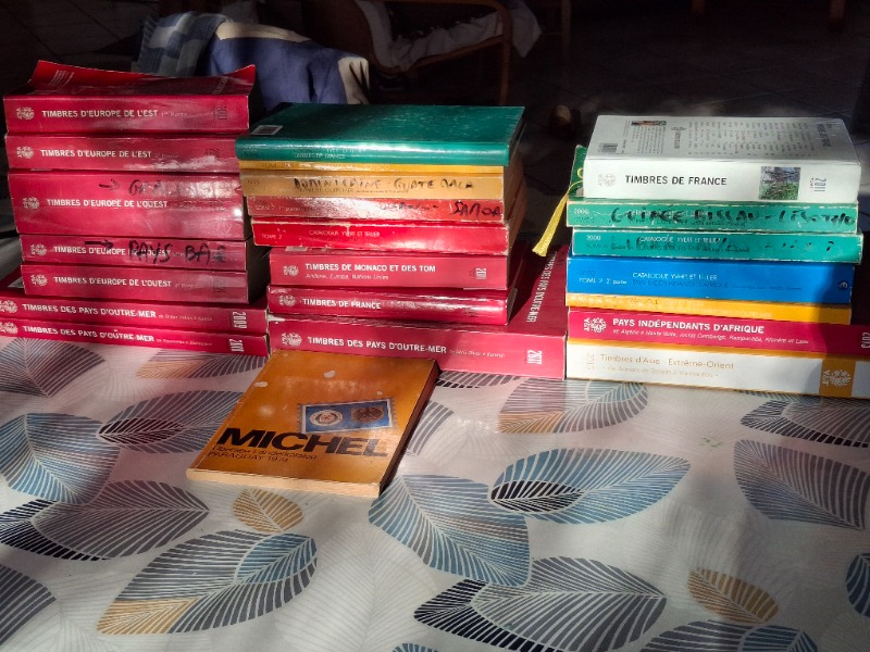 LOT de 21 catalogues de cotation Yvert et Tellier d'occasion. 1997 à 2015. Divers continents ou pays. + 1 cat. Michel 1974 du Paraguay. Usagés à très...