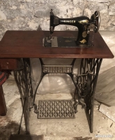 machine, table, cacha bois pour protéger la machine, petit tiroir et pédalier opérationnel