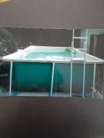 Piscine rectangulaire hors sol , 6 mètres par 3 , hauteur 1,20 avec :Filtre a sable ,Pompe ,Robot nettoyeur ,Lumière de paroi led ,Bâche à bulle ,950 €