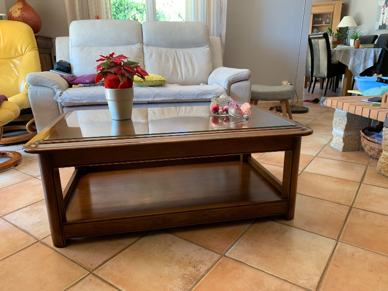 Belle table de salon en chêne massif, fabrication artisanale de la région(Aubenas).Très bon état ,teinte bois,dim 110sur70 et 40cm de hauteur.Prix...