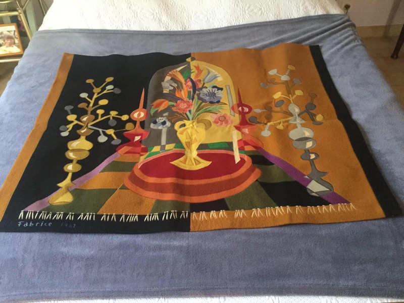 Tapisserie Feutrine de Robert Jean Fabre dit " Fabrice " 1962 doublée avec anneaux pour pendre . 105 x 84 cm. Cotée.