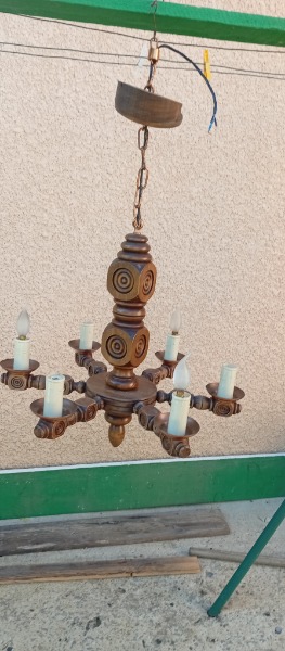 vend lustre ancien en bois, excellent état, il fonctionne parfaitement, double allumage. A retirer , aucun envoi. 20 euros.