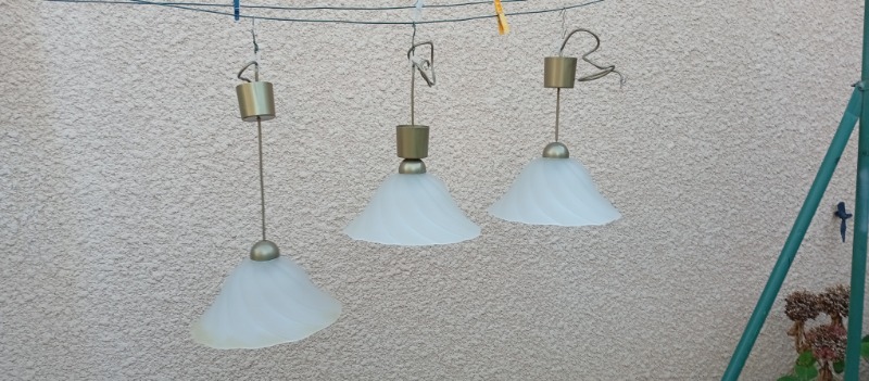 vend 3 suspension identiques en verre, très bon état. A retirer , aucun envoi. 10 euros pièce