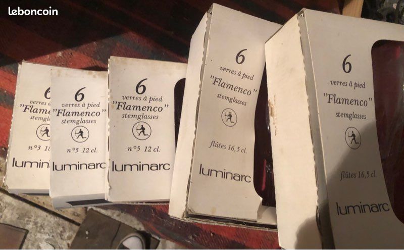 Lot de verres neufs Luminarc dans leurs emballages Gamme FlamencoVerres à eau 12Verres à vin 8Flûtes 10Autres Photos dispos Remise en main propre sur grande région Aubenas y compris plateauLaissez message car portable pro