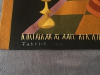 Tapisserie Feutrine de Robert Jean Fabre dit " Fabrice " 1962 doublée avec anneaux pour pendre . 105 x 84 cm. Cotée.