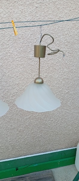 vend 3 suspension identiques en verre, très bon état. A retirer , aucun envoi.