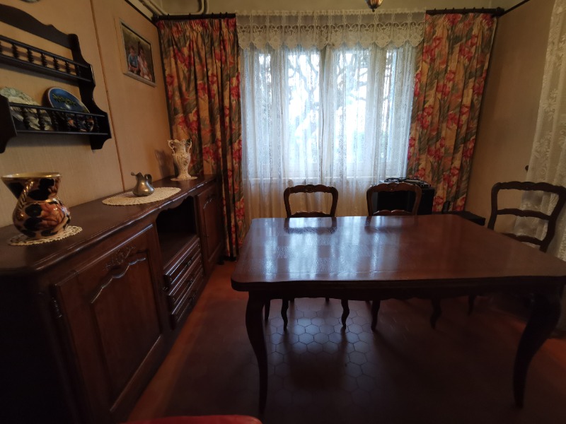 Meuble sàm: bahut bas 2 portes ornées d'une coquille, 3 tiroirs. Niche-table 8 personnes + 2 rallonges. 6 chaises en paille, années 60 en chêne...