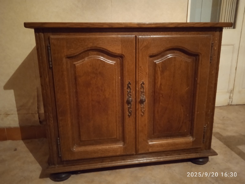 Meuble TV Hifi en chêne 93 x 77 x 43 - 2 portes une étagère 50 euros. Buffet ancien avec vitrine 200 x 132 - 80 euros