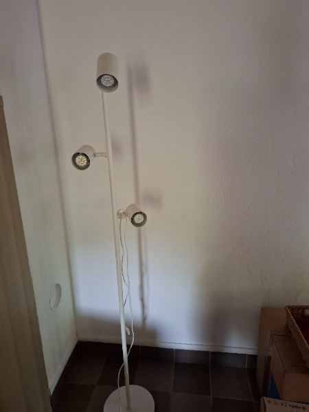 Lampadaire avec 3 spots,blanc, ikea,nymane.Ampoules led inclus. NEUF !Vous pouvez allumer et éteindre chaque tête de lampe individuellelent et orienter l´éclairage où vous voulez.