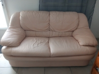 Canapé cuir rose clair 2 places 160x90cm, état correct 60€.