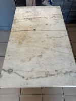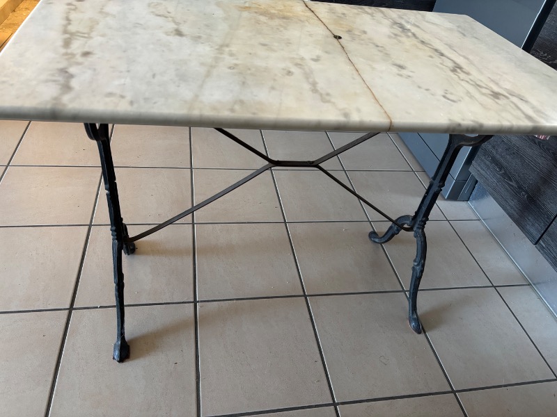 Vends table avec plateau émis marbre légèrement fendu et renforcé par plateau bois au-dessous