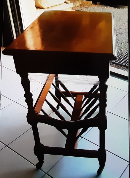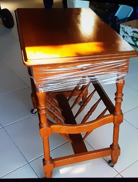 Petit meuble bois à roulettes porte revues avec 2 tiroirs de rangement teinté merisier bon état