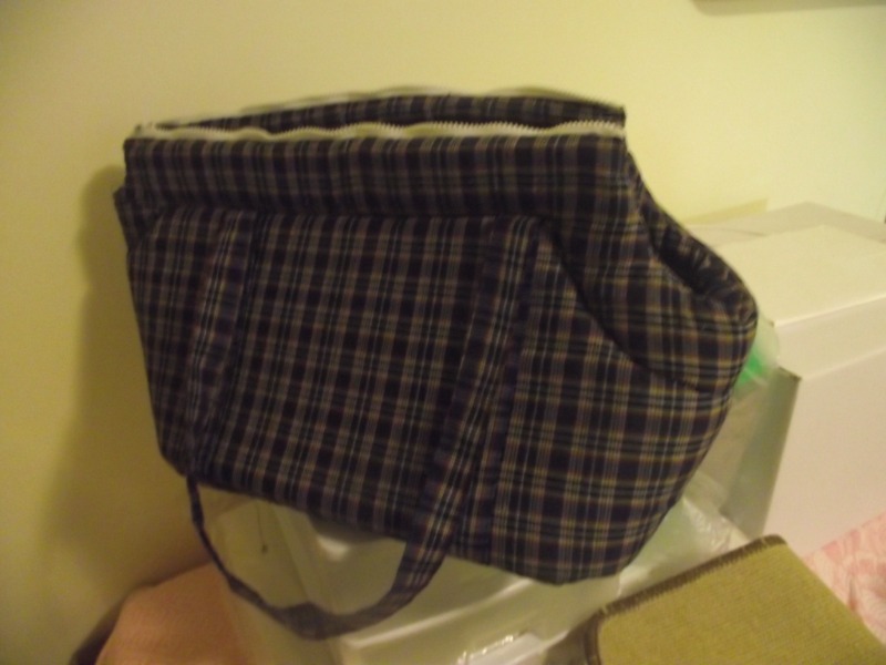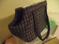 Sac de transport pour petit chien et chatfermeture éclair avec passage de la têteCouleur: marine écossaisneuf jamais serviA prendre sur place à Aubenas, pas de livraison. tél aux heures repas