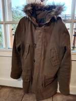 Vends veste homme,"best mountain"taille L, couleur kaki,capuche avec fourrure,poches multiples . Très bon état.