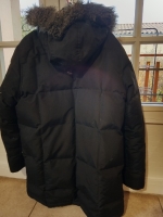 Vends veste homme longue,taille M,couleur noire,capuche amovible avec fourrure,poches multiples . Très bon état.