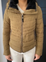 Veste femmeMarque Zara Taille S, couleur KakiPoches zippéCapuche qu'on peut enleverFourrure avec boutons pressions au col