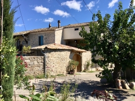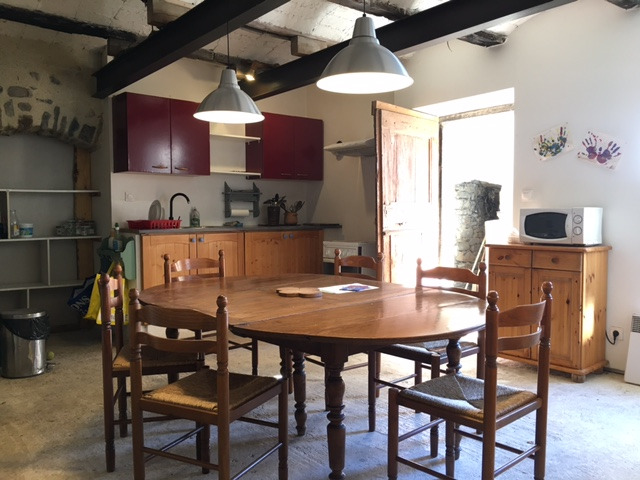 Espaces communs: salon cuis. SDB jardin terrasse atelier parking cave piscine chien chat poules, proche aubenas/voie verte.