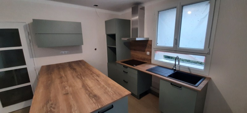Loue Appartement de type 4 de 79 m2, entièrement rénové, est situé au premier étage d'une maison et se compose d'une cuisine semi-équipée ouverte sur le salon, de 3 chambres avec placard, d'une salle d'eau et de WC séparés. Chauffage par PAC, DPE A, Volets roulants électrique
