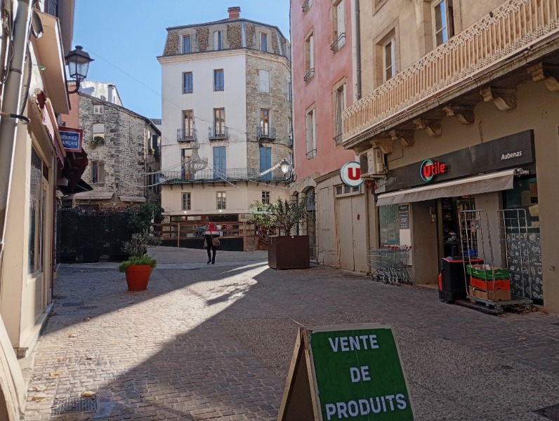 Vds murs commerciaux centre ville Aubenas bon emplacement , local 25m2 avec eau et toilettes+ cave 20m2 ventilée accessible par magasin , clim, petite terrasse louée a la mairie petit prix