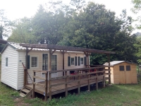 Surface 32 m2 , 2 chambres : 1) avec lit double 2) deux lits jumeaux . Une salle de douche neuve. W.C indépendant . Séjour avec convertible 2 places et cuisine 4 feux gaz . Radiateurs électriques dans chaque pièce. Terrasse 28 m2 couverte. Cabane bois de 5 m2 .Situé dans un camping résidentiel 4* (avec piscine )et ouvert toute l'année ( location à l'année du terrain). Ce camping est près de Jaujac (1,5km), Ardèche( village de caractères) et près (300m)des gorges du Lignon (au pied de falaises de basalte). Belles Balades dans les environs.