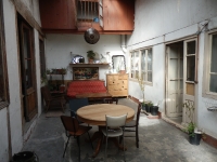 - Une petite remise sur deux niveaux de 12m² dans un jardin/cours de 80m²