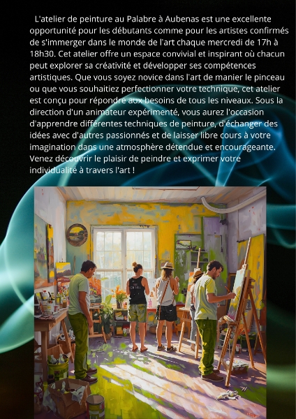 Rejoignez-nous pour un atelier de peinture et dessin au Palabre à Aubenas, chaque mercredi de 17h à 18h30. Cet atelier est une excellente occasion...