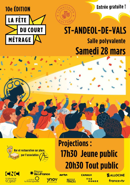 Venez participez à la Fête du court métrage à Saint Andéol de Vals le samedi 28 mars à la salle polyvalente ! Un événement pour célébrer la tolérance...